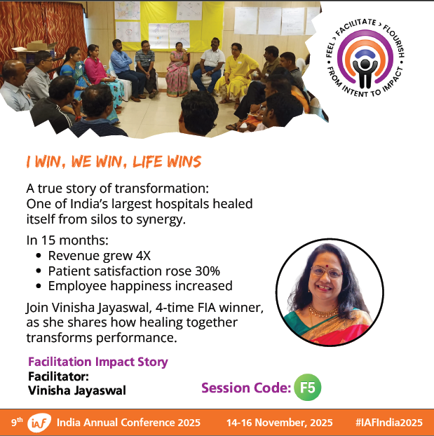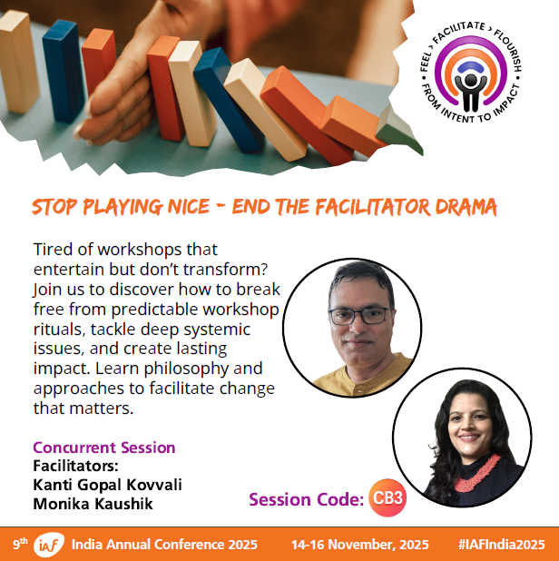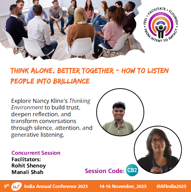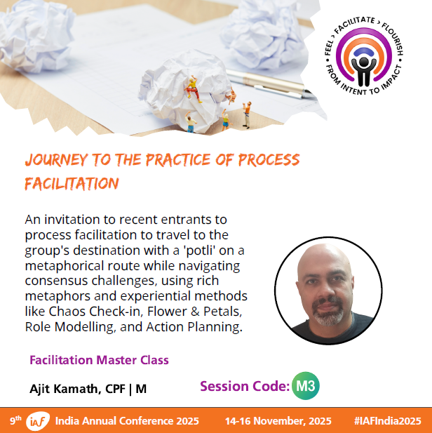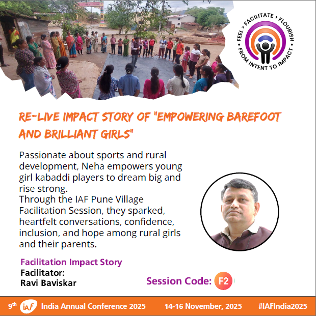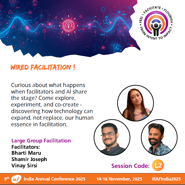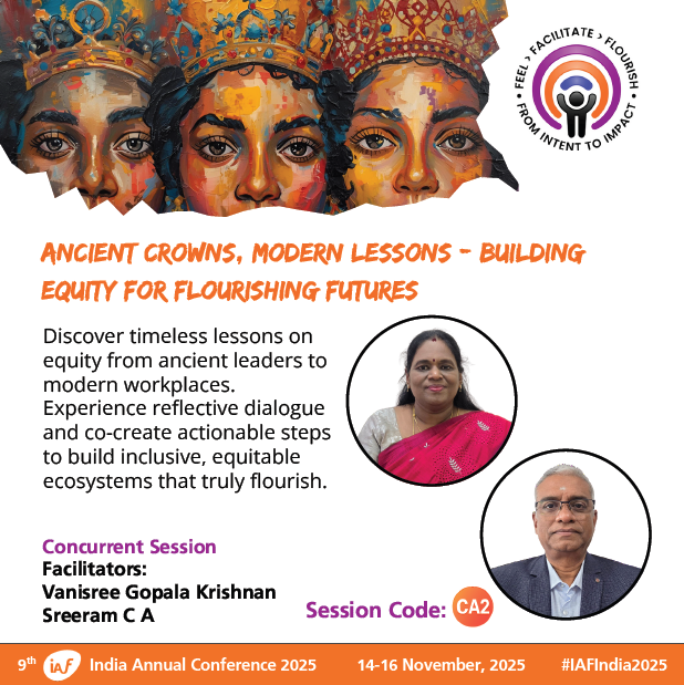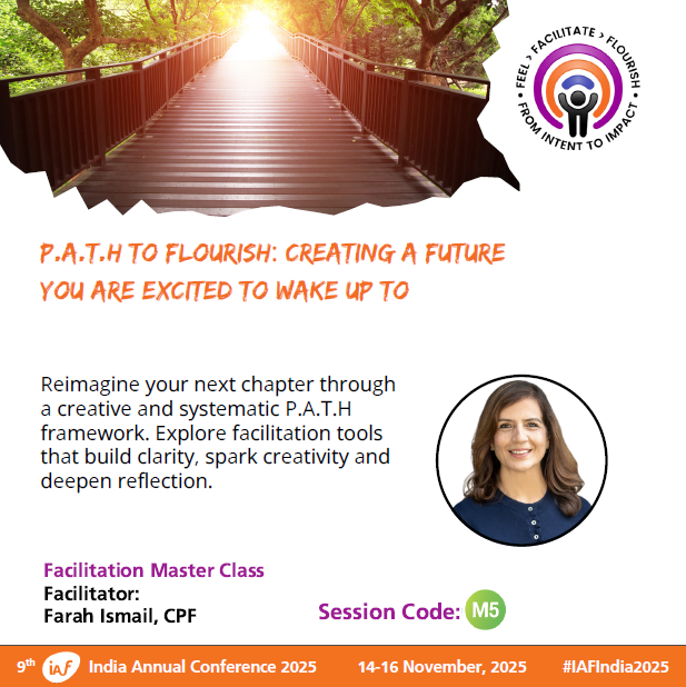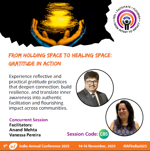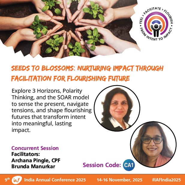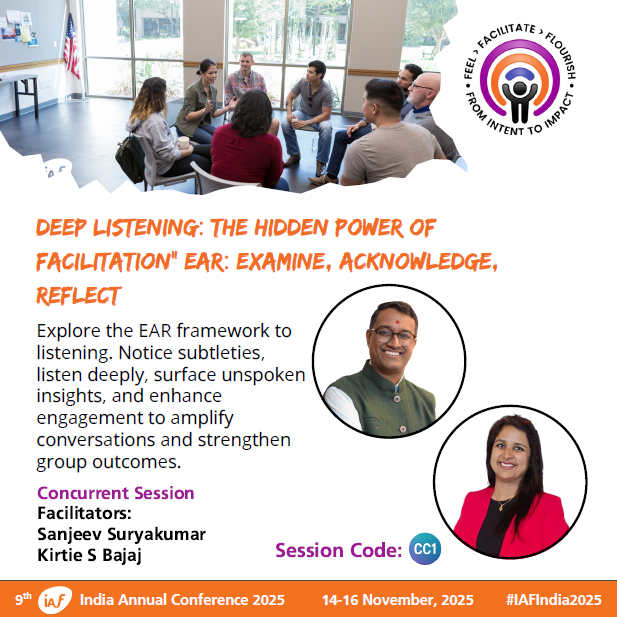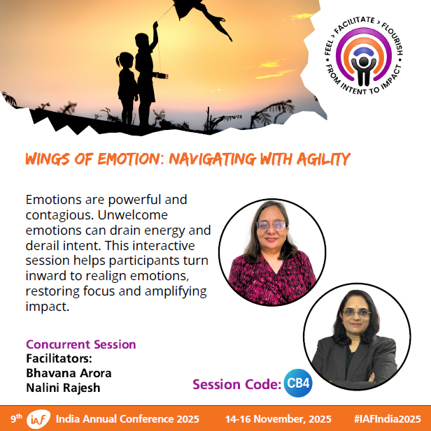 The 9th IAF India Annual Conference is more than an event—it’s an immersive journey into the art of facilitation. Centered around the theme "Feel, Facilitate, Flourish: From Intent to Impact," it offers a safe, inclusive space for facilitators, professionals, and leaders across sectors to engage deeply, share insights, and grow together.