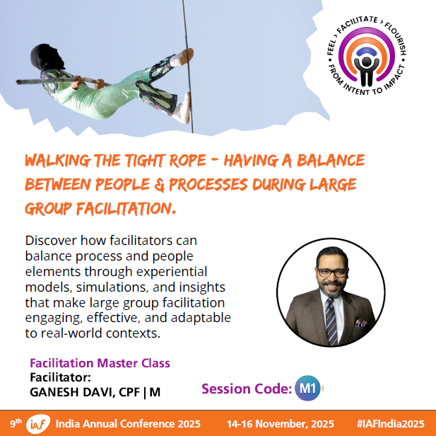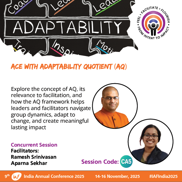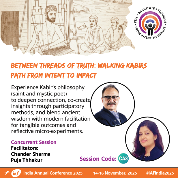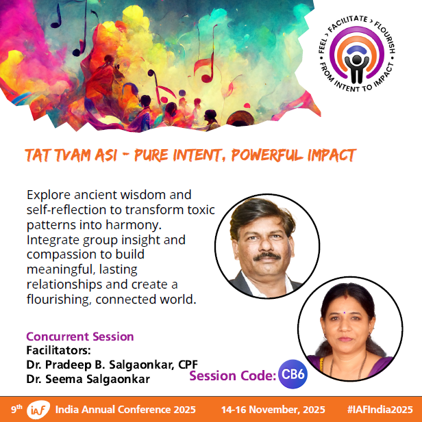 The purpose of the 9th IAF India Annual Conference is to serve as a pivotal platform for facilitators, leaders, and change-makers to explore the transformative journey from intent to impact. In a world where challenges are complex and solutions demand a collaborative approach, this conference is designed to equip participants with the mindset and skills needed to guide groups with purpose and create lasting, positive change.